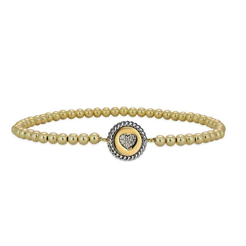 Heart Disc Pendant Bracelet with Cubic Zirconia Stone Accents for Ladies - Gold Filled Beads Bracelet