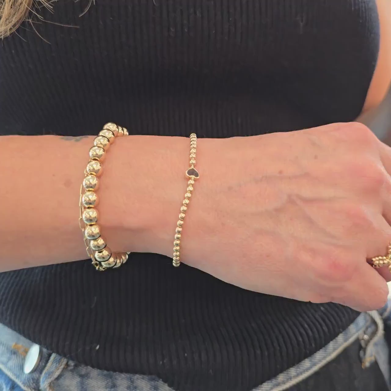 Elevate your style with our exquisite Mother of Pearl Heart Gold Filled Bracelet. This charming piece blends boho and hippie vibes, crafted meticulously to add a touch of elegance to any outfit. The bracelet features lustrous Mother of Pearl gemstones, set against a backdrop of 3 mm gold-filled beads that catch the light beautifully. The heart pendant, made from gold-plated sterling silver, adds a sweet and personal touch, making this bracelet a meaningful accessory for any occasion.