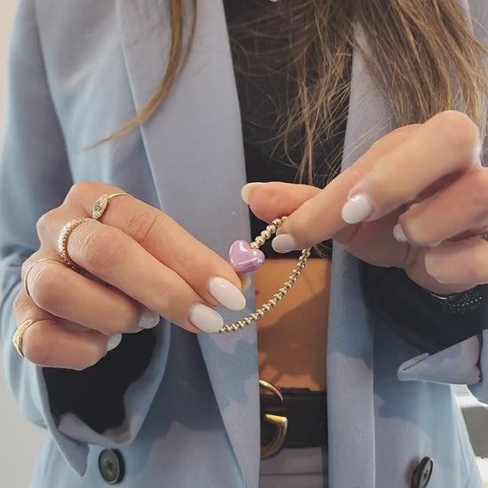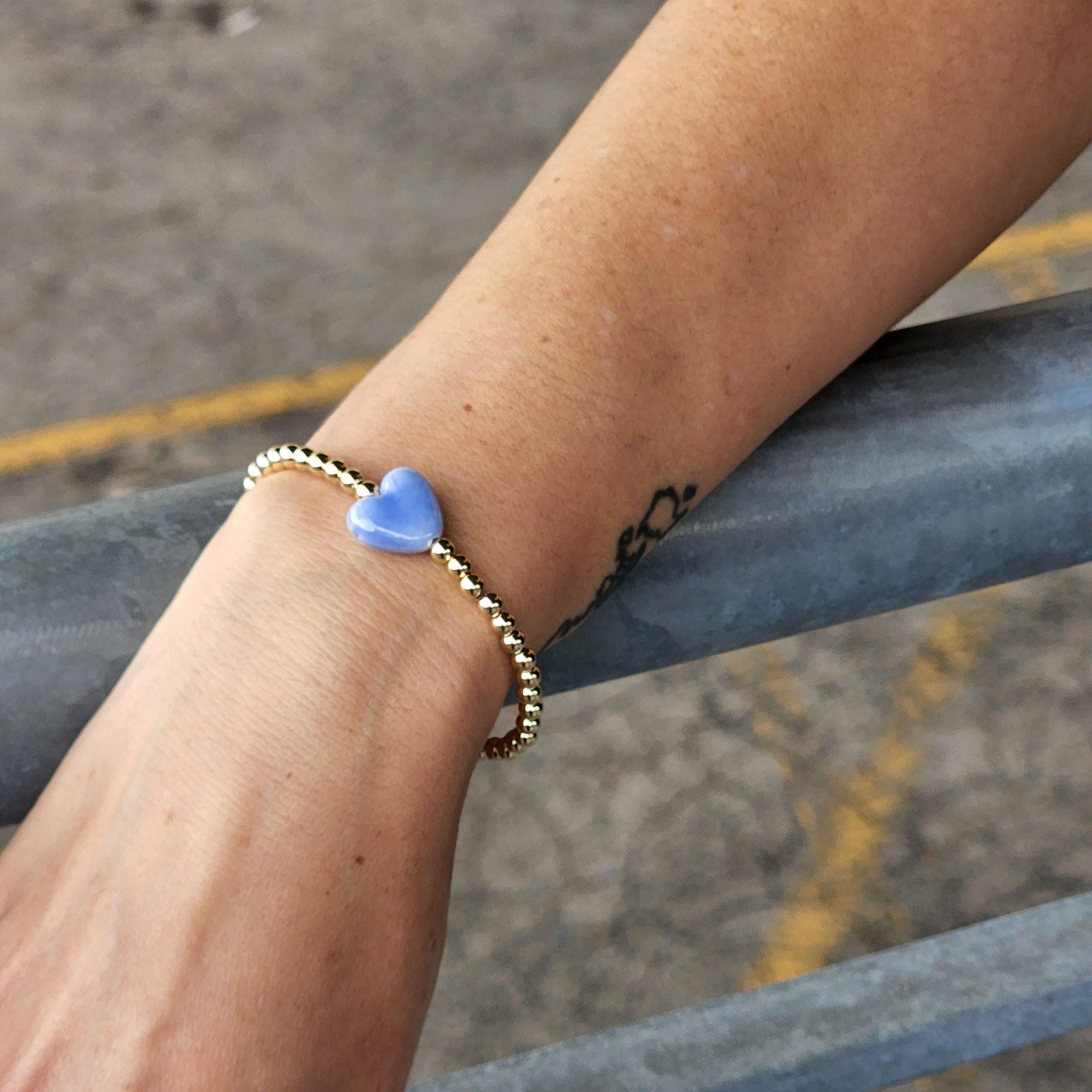 Discover charm and elegance with our HEART BEADS Stackable Love Bracelet, a stunning piece crafted from high-quality gold-filled materials. Designed to capture hearts, this bracelet features 4 mm beads that exude luxury and durability, adorned with a charming heart pendant available in vibrant colors like red, purple, blue, white, and aqua. Each bracelet is a unique expression of love and style, perfect as a thoughtful gift for someone special or as a delightful addition to your own jewelry collection.