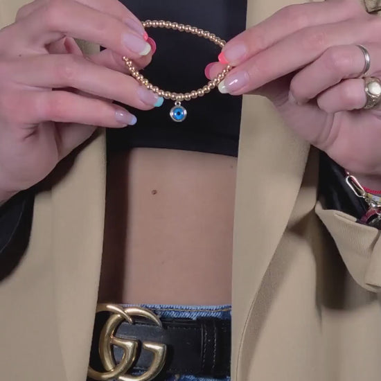 Isabella Celini Evil Eye Stretch Bracelet in Gold Filled Beaded - Good Luck Eye Stacking Bracelet for Women