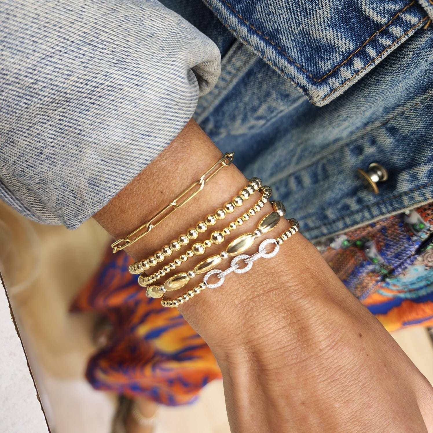 This bracelet features a combination of 3 mm and 10x4 mm gold filled beads, ensuring a luxurious shine that lasts. The adjustable design allows for a comfortable fit, available in sizes suitable for adults and children. Whether you wear it solo for a minimalist look or stack it with other bracelets for a boho-chic vibe, this piece effortlessly elevates any outfit.