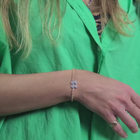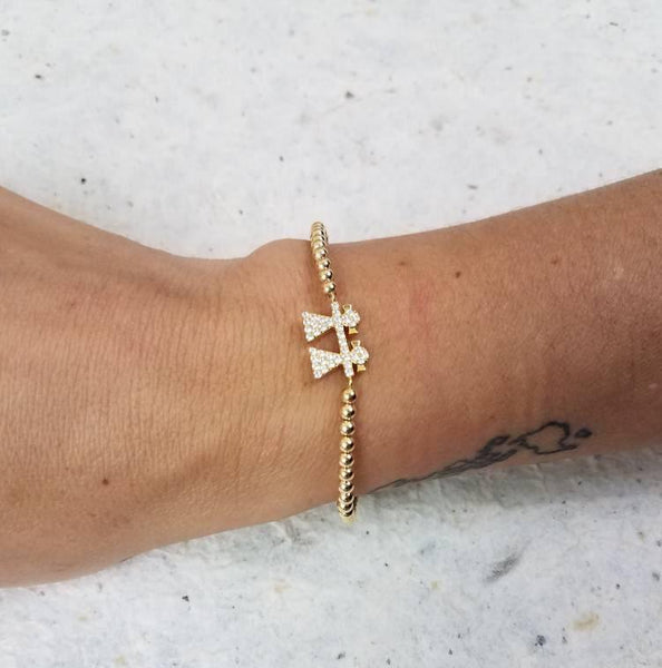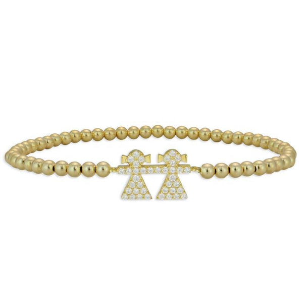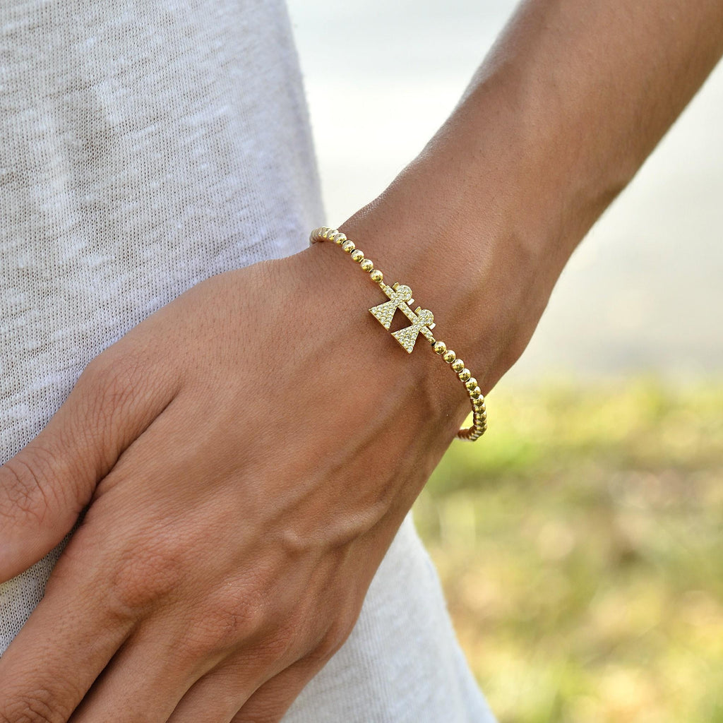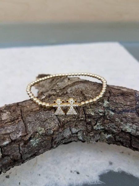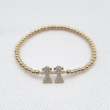 Sisters Pendant Gold Filled Beaded Bracelet with CZ Accents - Stretch Fit and Stackable - Handmade Jewelry