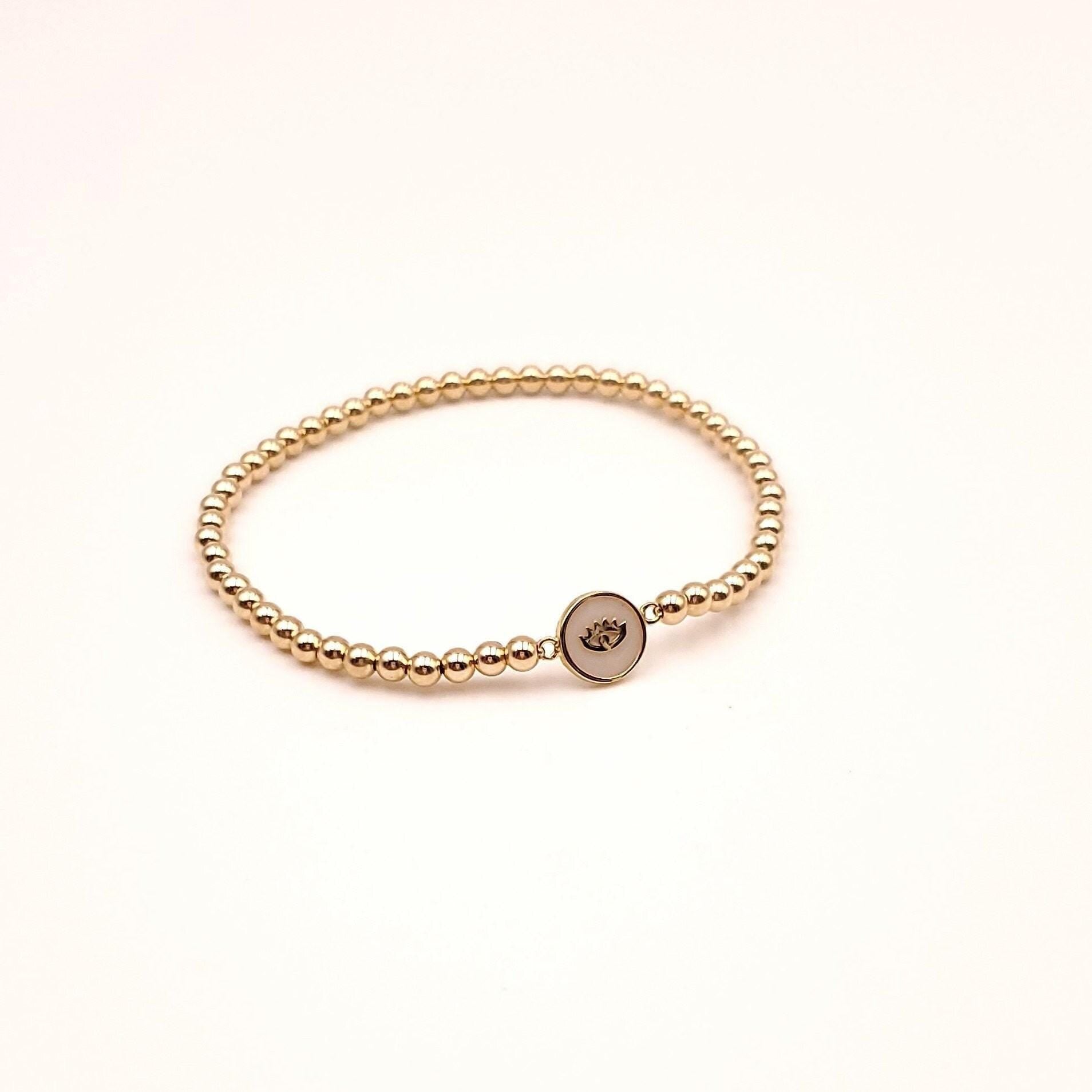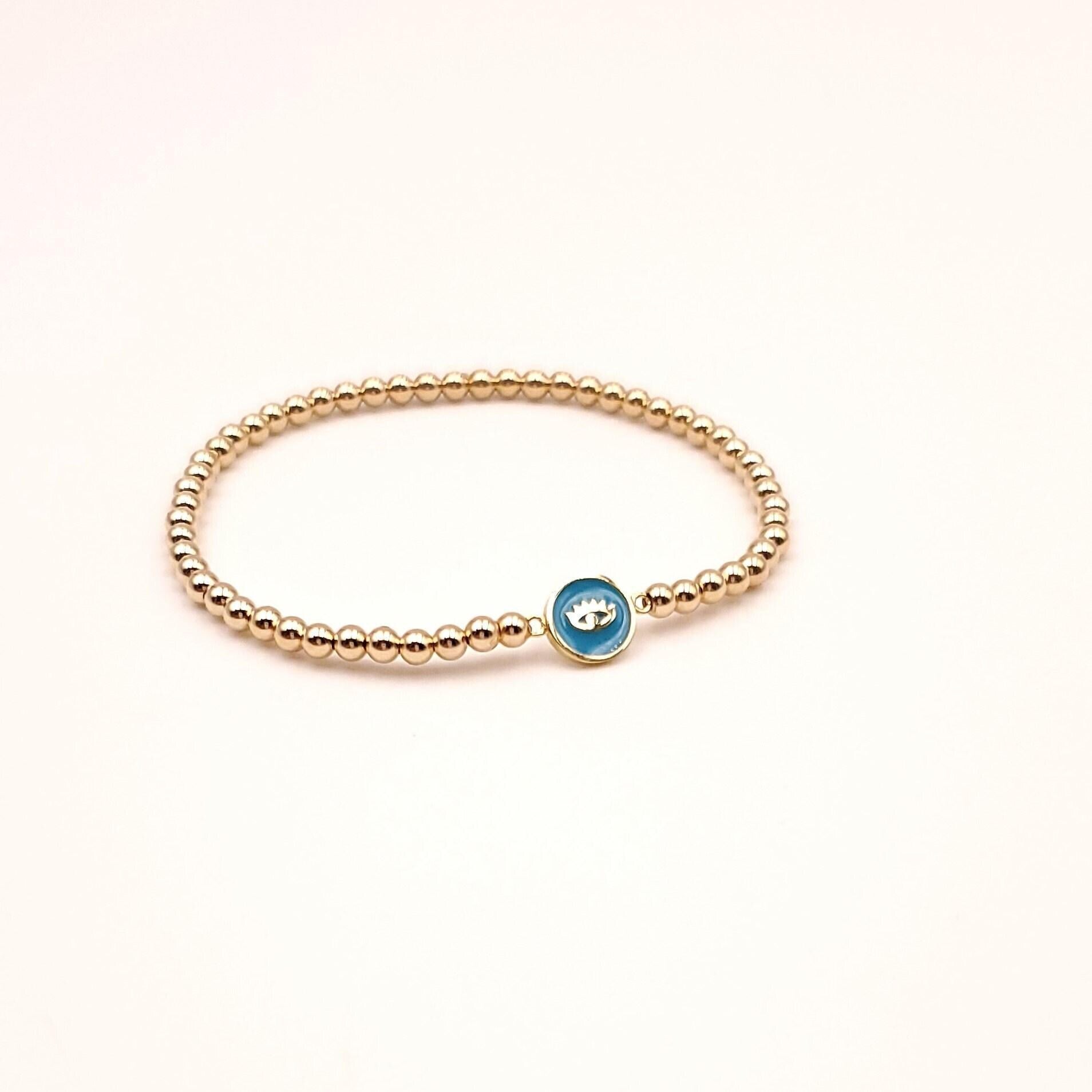Small Round Enamel Evil Eye Gold Filled Bracelet, Isabella Celini, Gold Filled Beaded, Stretch Stacking Bracelet, Protection Bracelet