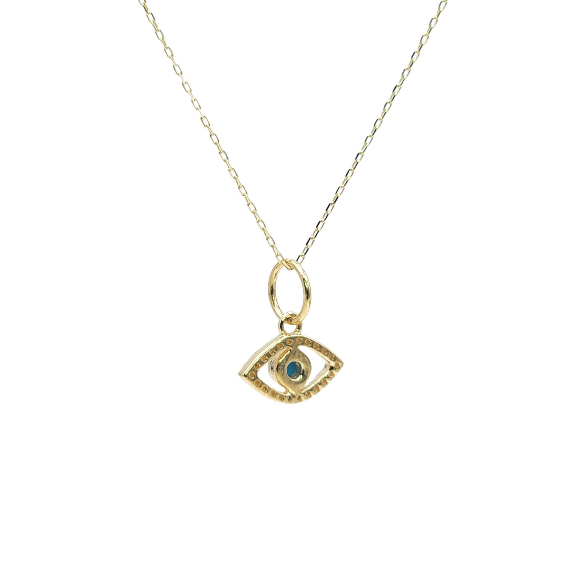 The evil eye symbol, known for its protective properties, is beautifully set in a 14k solid gold pendant, measuring 12mm by 9mm. The pendant hangs gracefully from a sturdy, flat curb chain, adding a touch of boho-chic to any outfit. Whether you're dressing up for a special occasion or adding a touch of sophistication to your everyday look, this necklace is the perfect accessory.