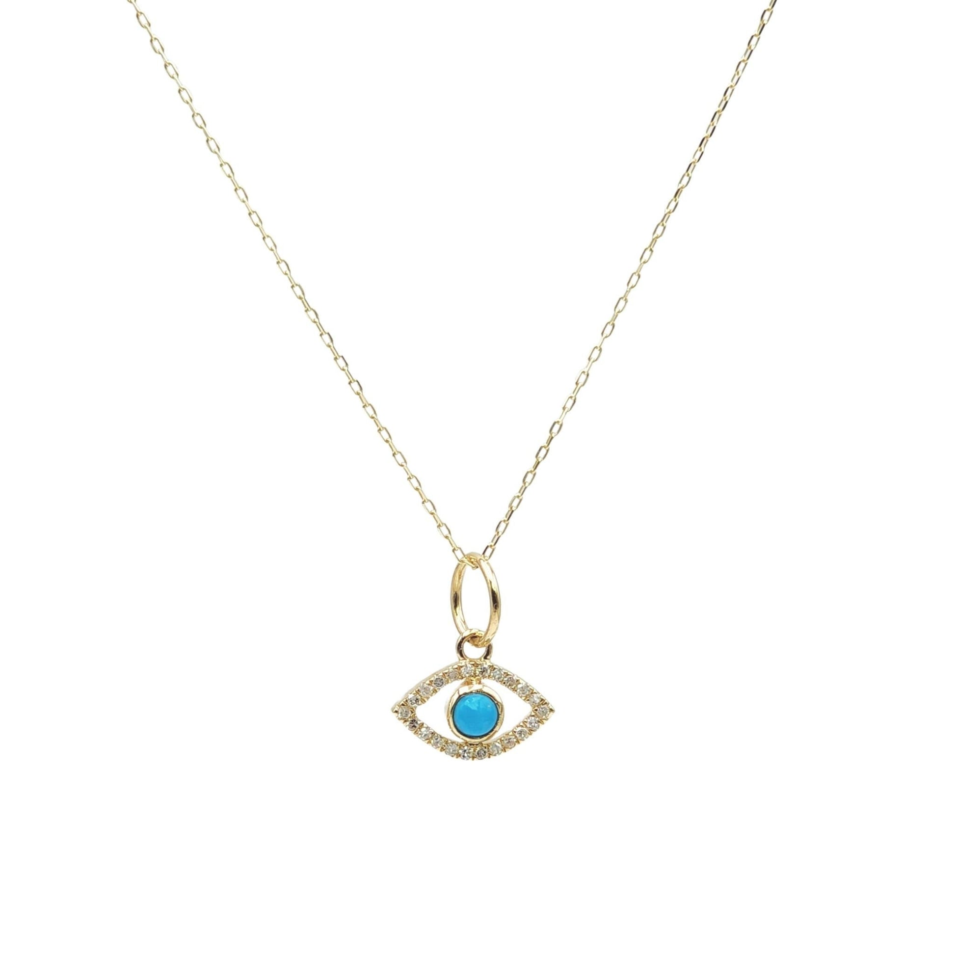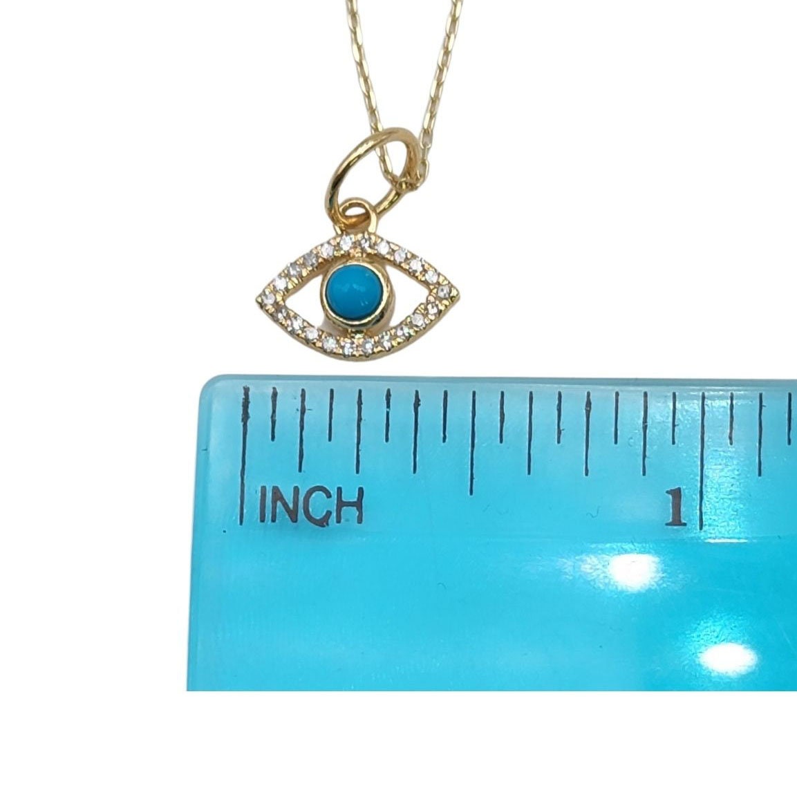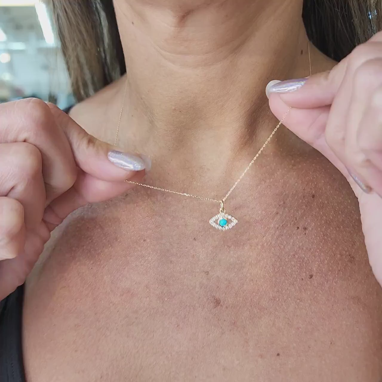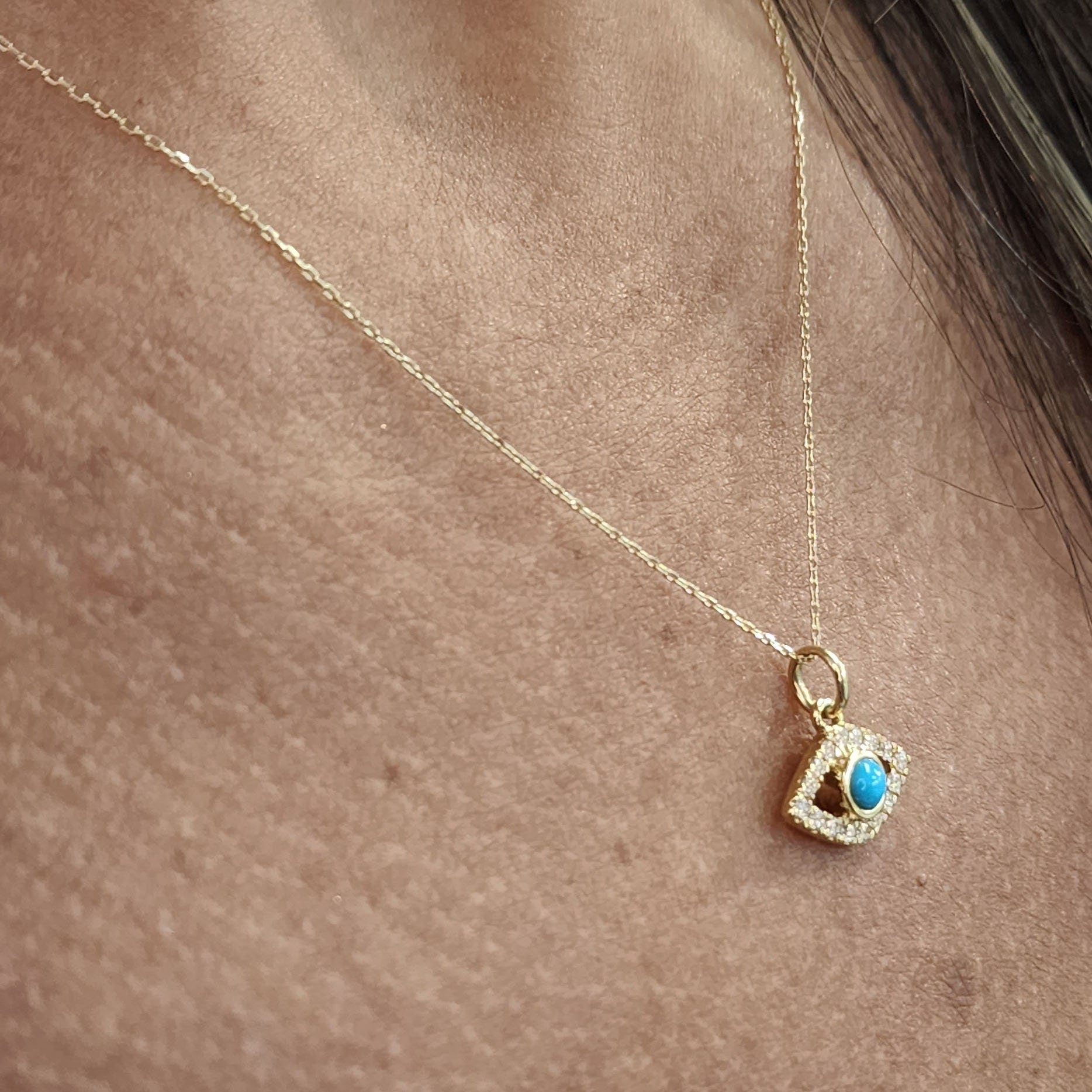 Evil Eye Necklace 14k Solid Gold Turquoise Diamond & Cable Chain