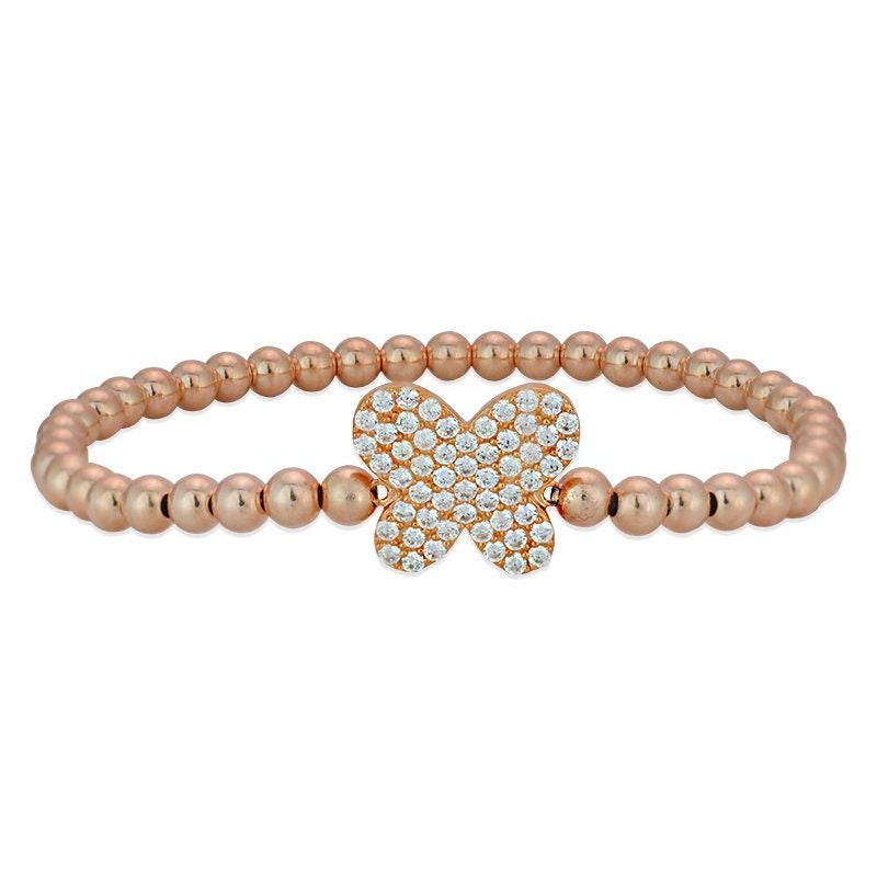 Crafted from durable gold filled and sterling silver materials, this bracelet features 4 mm beads that are tarnish-resistant and safe to wear in water, making it perfect for everyday use. The centerpiece is a butterfly charm, available in your choice of gold plated sterling silver, rose gold plated sterling silver, or sterling silver, adding a whimsical touch to your wrist.
