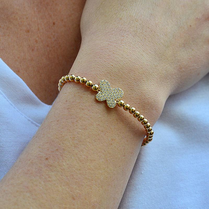 Stretch Butterfly Gold Beaded Bracelet - Non Tarnish Womens Jewelry